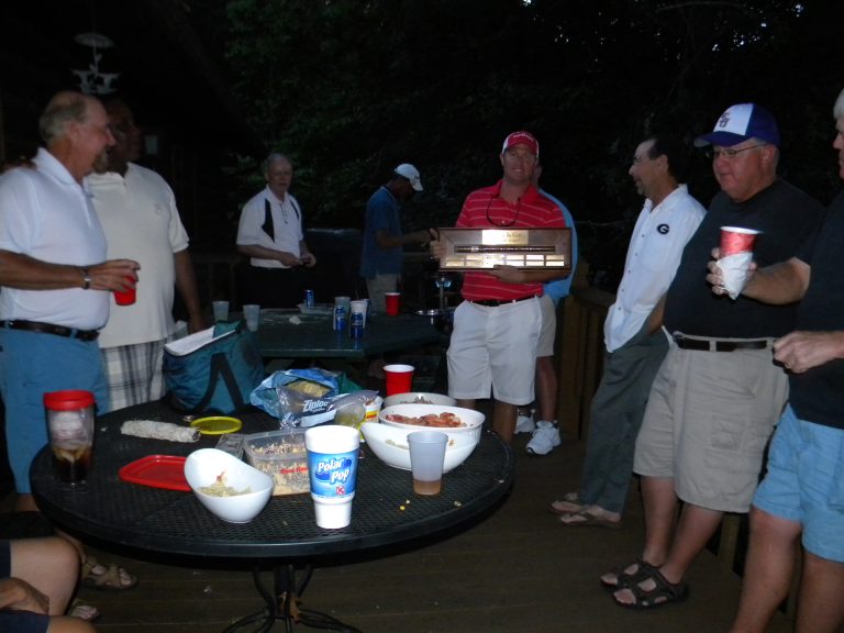 Spurred on by an early round EAGLE, the young pup raced out to a large lead and never looked back enroute to his FIRST BIG Stogey Championship. Ryan finished the day +4 and won by 3 points over his nearest competitors. It was certainly a well deserved victory that made both father (Rick we think) and son very proud. They are the first father-son duo to have their names engraved on the BIG Stogey Trophy.