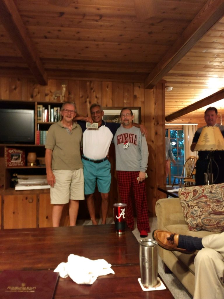 Speaking of class act, feeling bad for my boy TLo, who so valiantly tried to go wire to wire but failed miserably, I graciously tried to cheer him up by reminding him how good he looked and how well he played in the previous round wearing one of my GEORGIA BULLDAWG golf shirts. My golf tip to him was “wear one each day if you want to be BIG champ!” To date he hasn’t followed my advice. Perhaps he’ll grow wiser with age. Ohhh, and for those wondering, I won back 15 Graham bucks on day 3. (- :