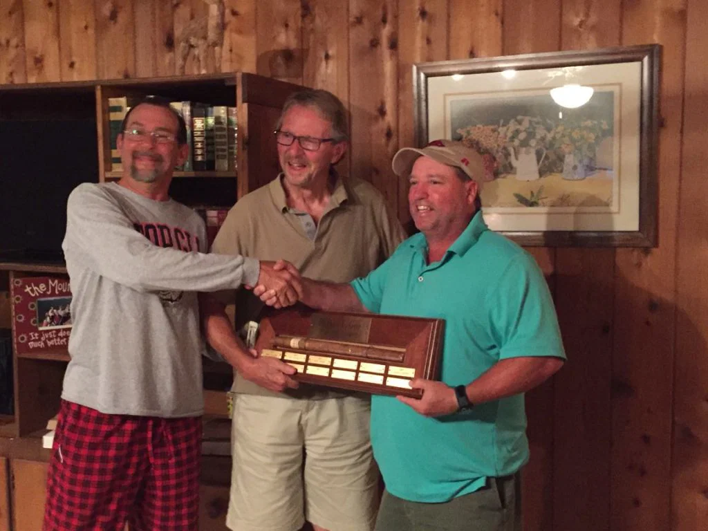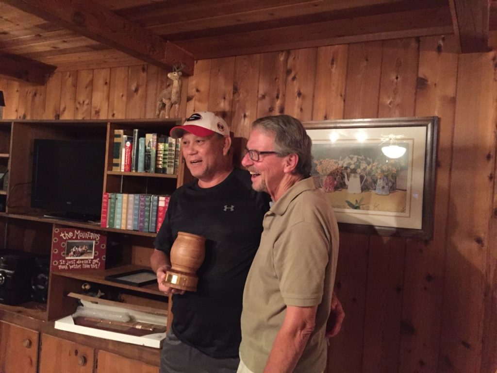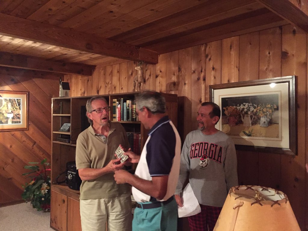 KK’s stellar -16 play earned him his first “game as dead as this prez” $1 award as he fended off the fast-fading 2017 BIG Champ Charlie Griffin. Normally, I wouldn’t post this award presentation but Charlie just seemed so pleased that he didn’t win it that I had to! Sorry KK, I promise I will try not to mention that you presented the Prez to your best friend Paul the following year.
